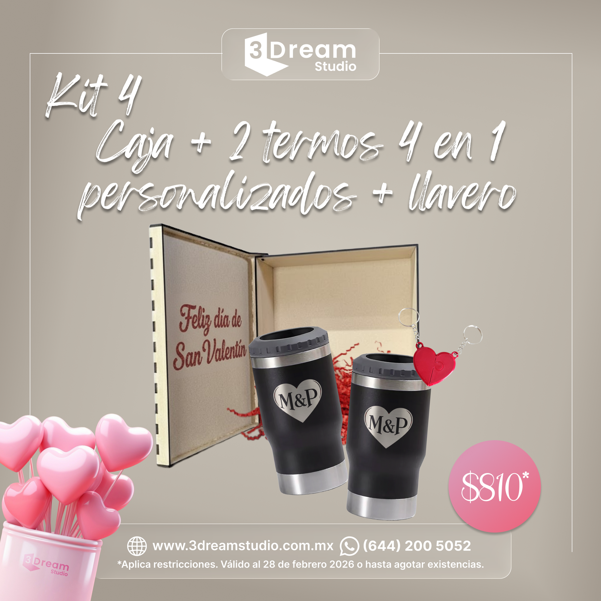 Caja 21x18 cm personalizada con vinil + 2 Portabotes 4 en 1 con accesorios personalizados.