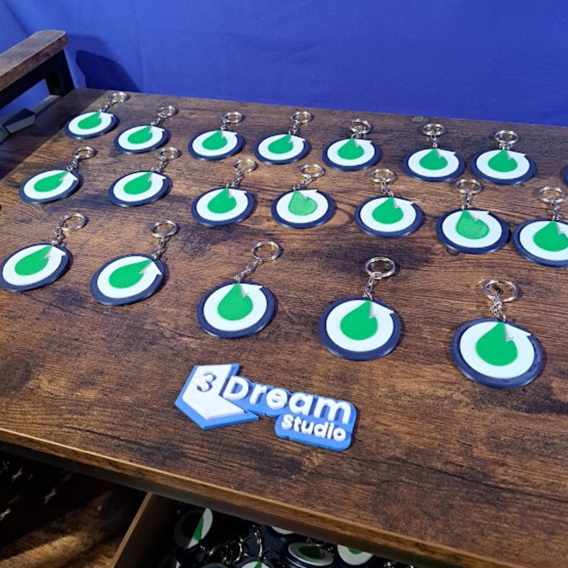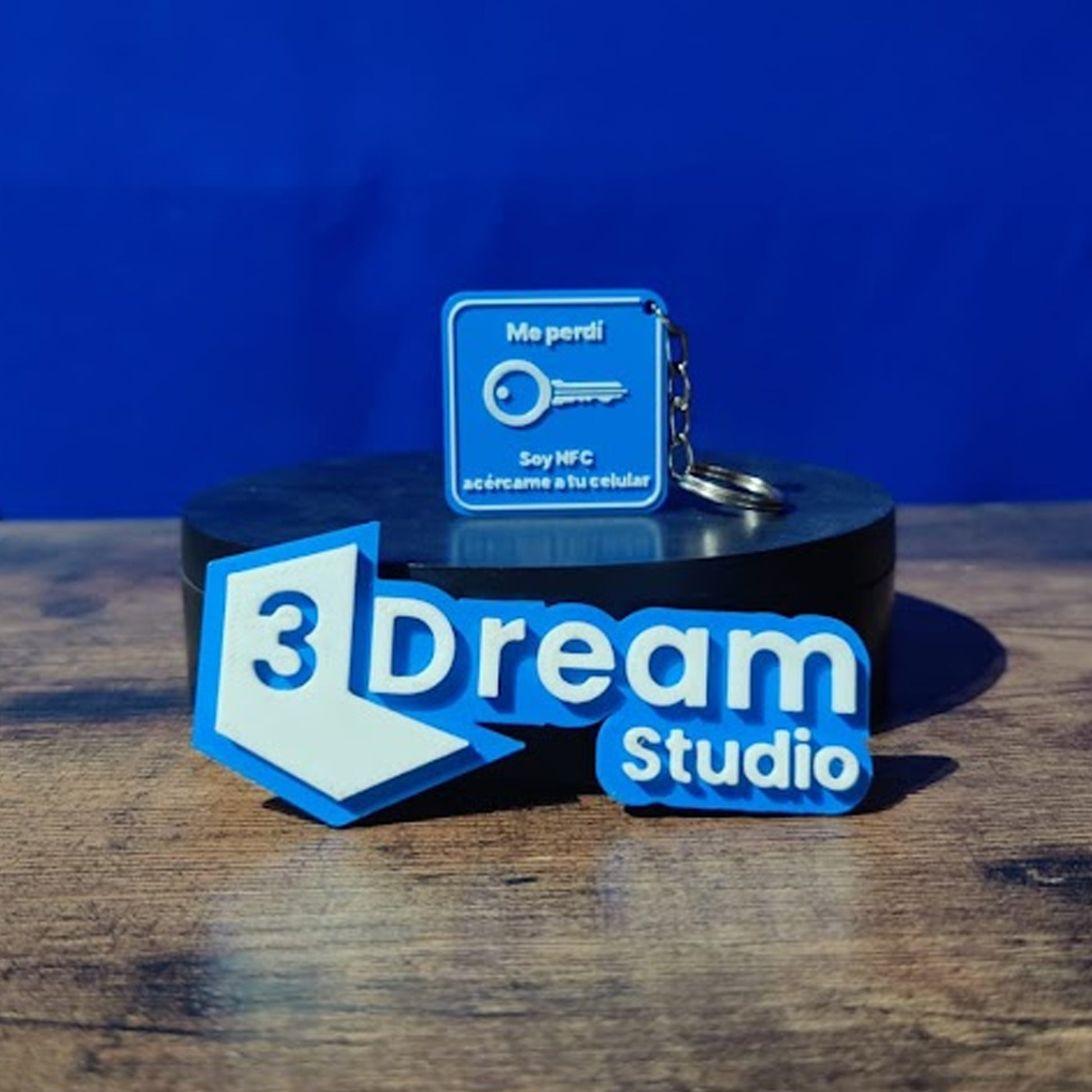 Llaveros con tecnología NFC impresos en filamento multicolor, personalizado con tu logo.