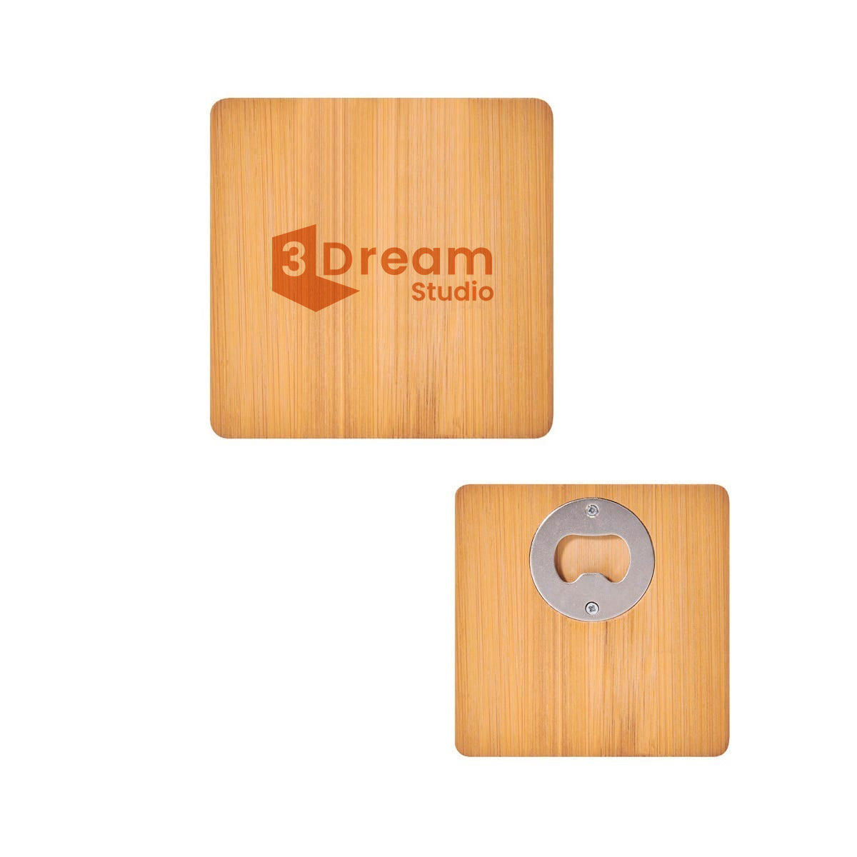 Portavasos de bambú con destapador para botellas. La madera es un producto natural el cual puede presentar variaciones en tonalidades y vetas. Personalizados con láser.